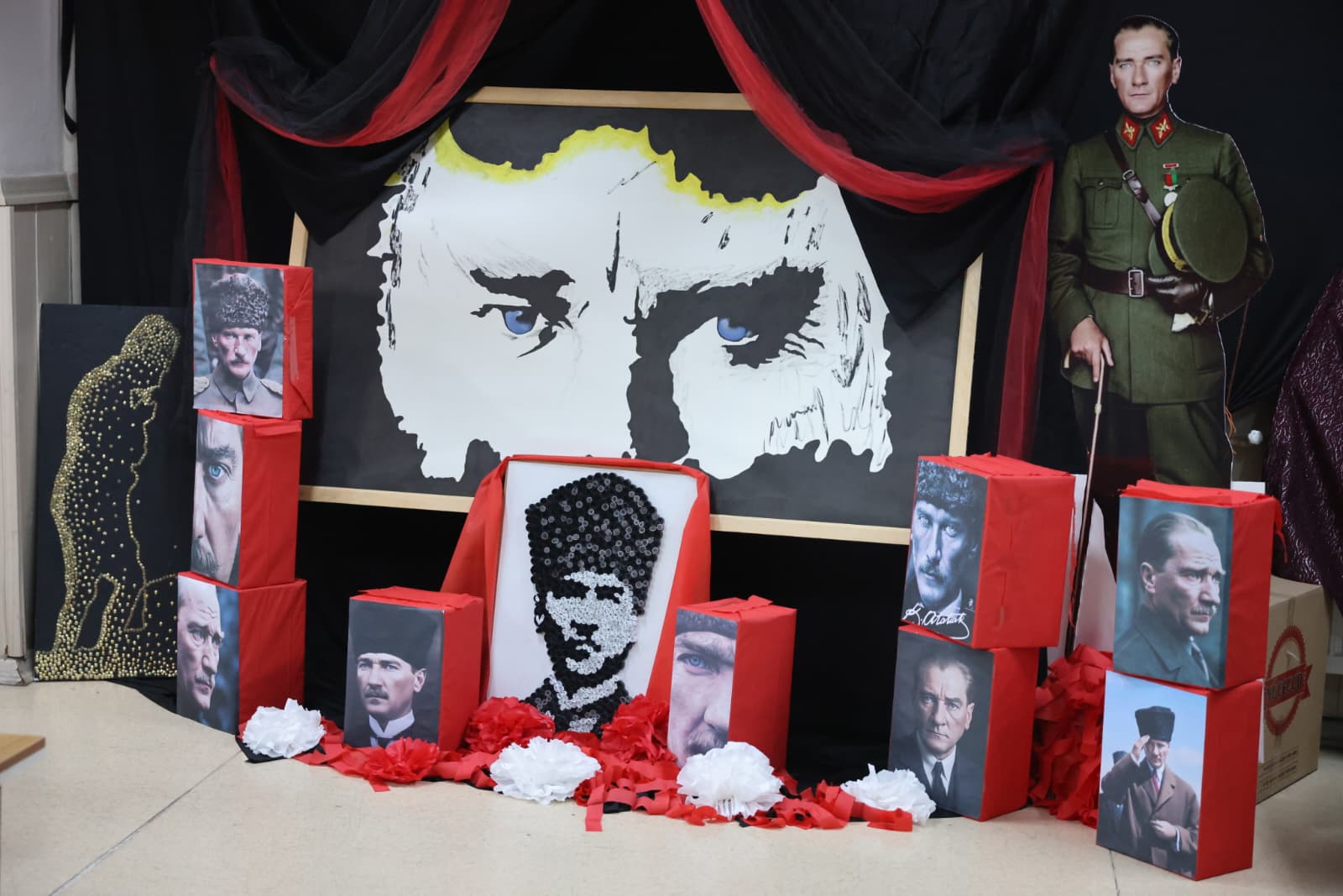 Atatürk Anıtı önünde saat 09.05’te 2 dakikalık saygı duruşunda bulunulup hep bir ağızdan İstiklal Marşımız okundu. Akabinde ise İlçe Kaymakamı Muhammet Cengiz ve Belediye Başkanı Ali Avan, Atatürk Anıtı önüne çelenk sunumu gerçekleştirdi.