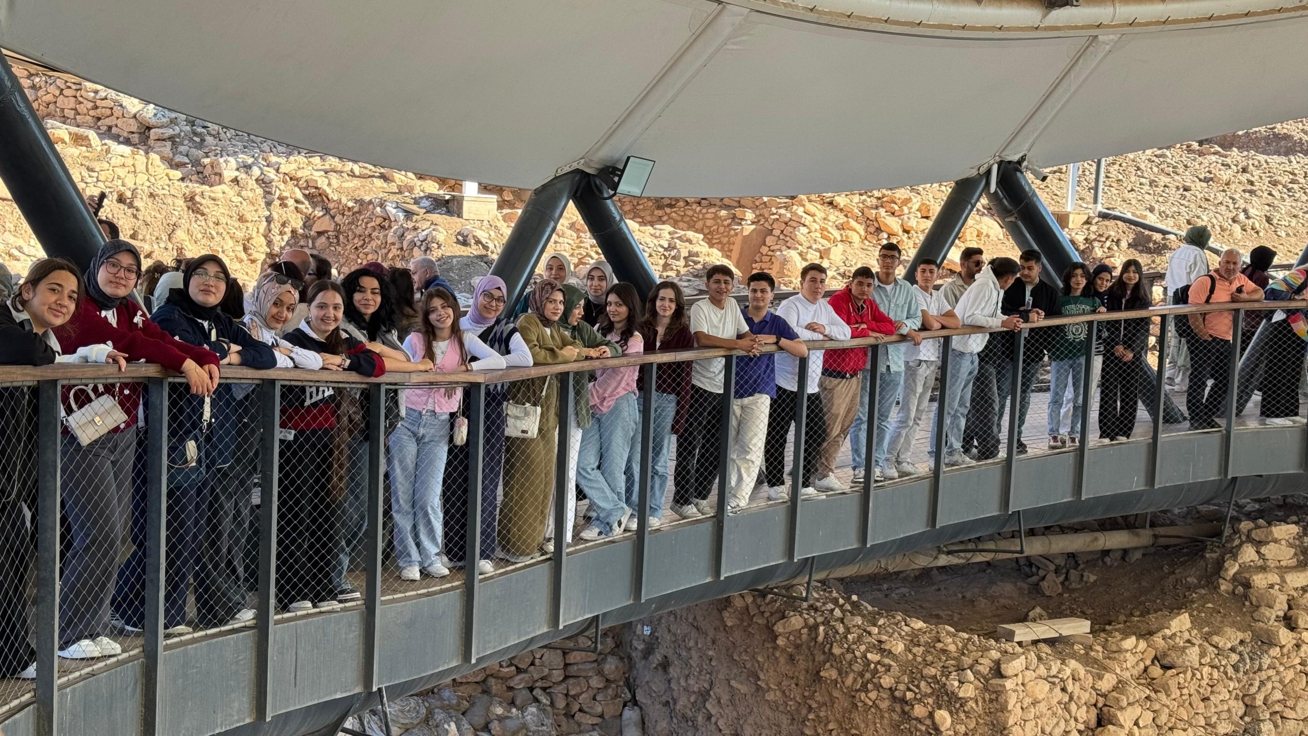 Ardından dünyanın bilinen en eski yapısı olan ve tarihin sıfır noktası olarak nitelendirilen Göbeklitepe’ye geçildi. Öğrenciler, insanlık tarihine ışık tutan bu arkeolojik alanda yapılan kazılar ve buluntular hakkında bilgi aldı.