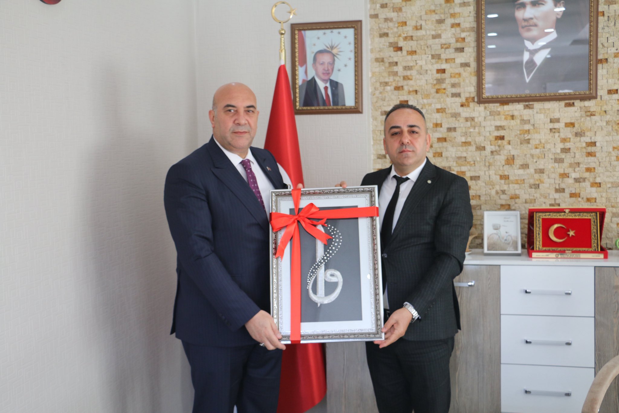Program çerçevesinde Pozantı İlçe Millî Eğitim Müdürü Fatih Sezgin, İl Müdürü Aras’a günün anısına hediye takdim etti.