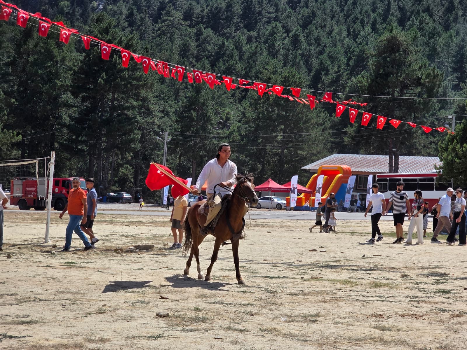 Karboğazı Piknik alanında kurulan Yörük çadırları, yöresel kıyafetler ve el sanatları stantları ziyaretçileri geçmişe götürürken atlı gösteriler, mehteran gösterisi ve güreş etkinlikleri büyük ilgi gördü. Şenliğe gelen katılımcılar ise ellerinde Türk bayraklarıyla korteje eşlik etti ve gecenin geç saatlerine kadar doyasıya eğlendi.