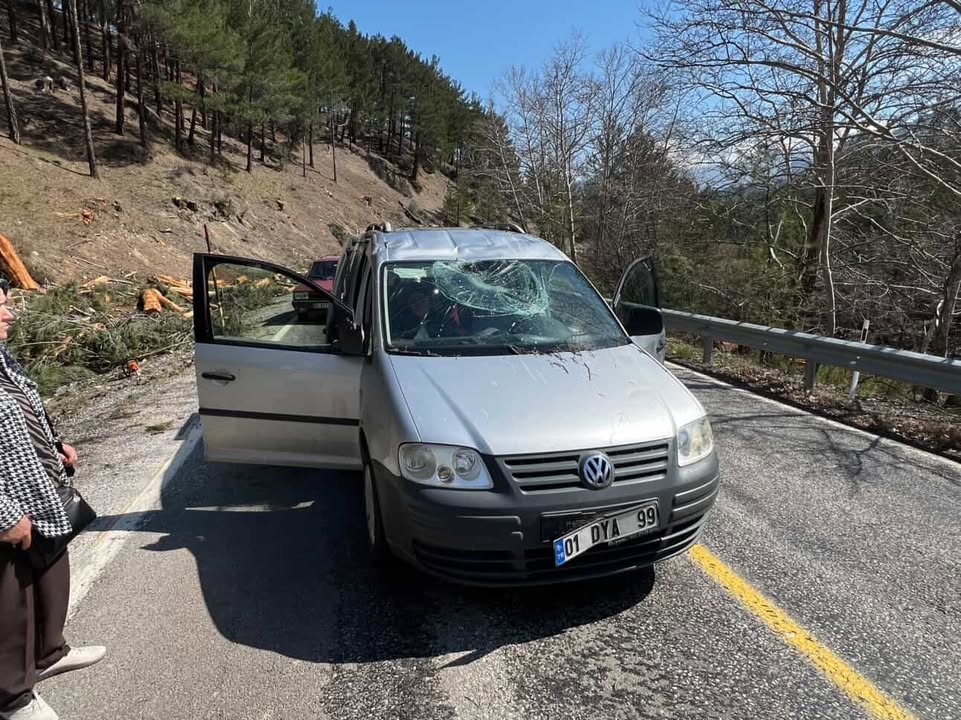 Akçatekir – Pozantı eski karayolunda seyir halindeki hafif ticari aracın üzerine devrilen ağaç, faciaya neden oluyordu.