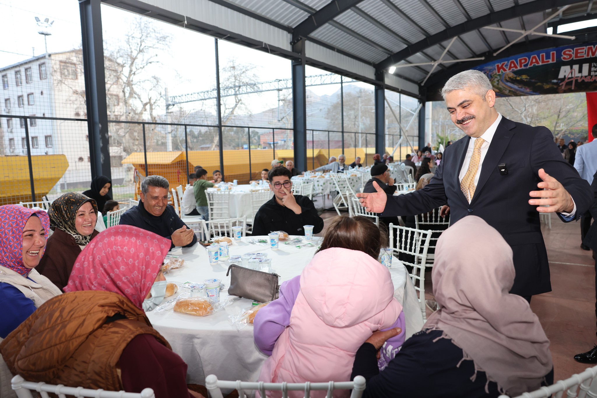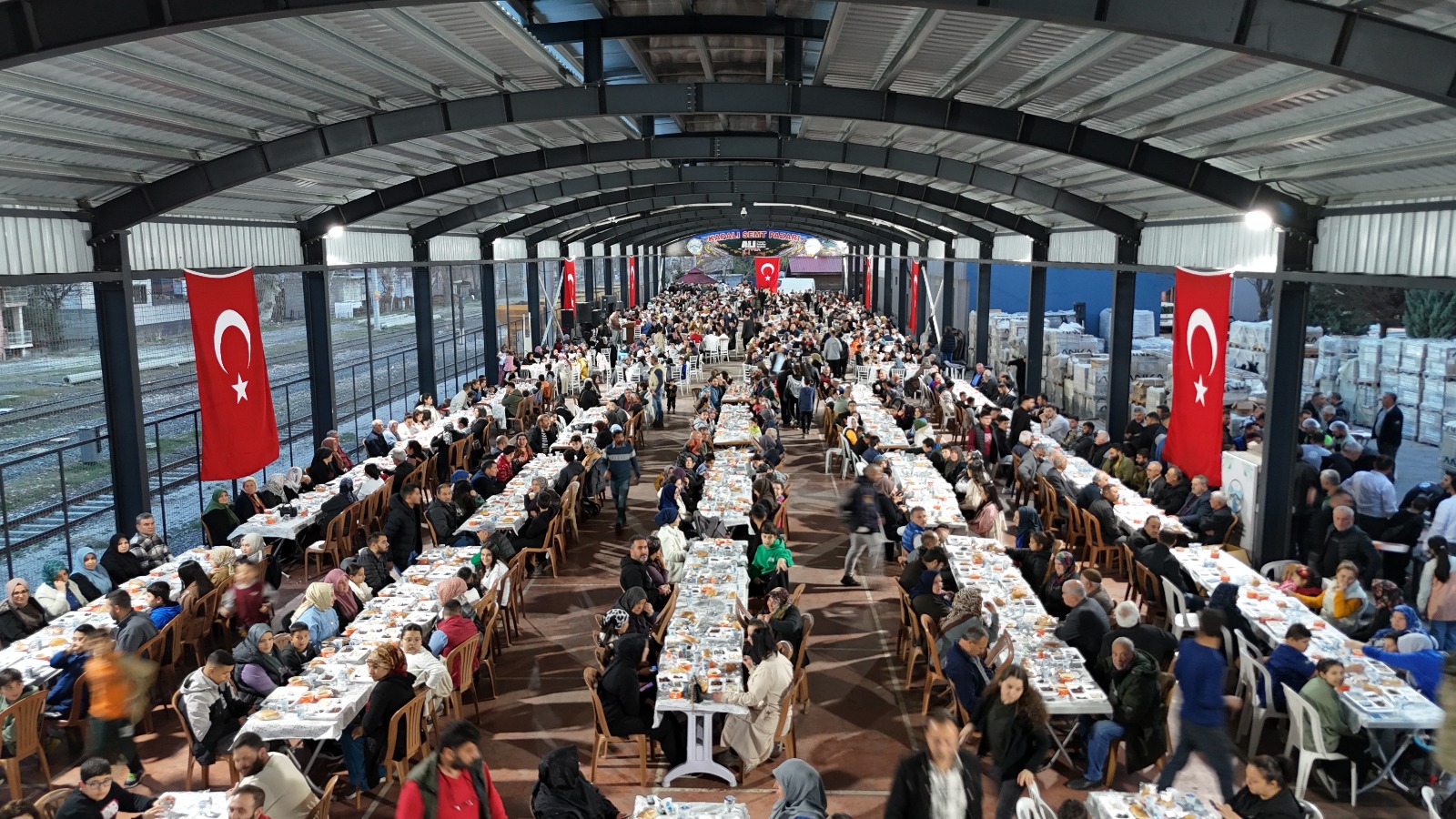 Belediye ekipleri sabahın erken saatlerinden itibaren kapalı semt pazarını önce tertemiz yıkadı ardından ise masa ve sandalyeleri dizerek iftara titizlikle hazırlık yapıldı. Türk Bayraklarıyla süslenen kapalı semt pazarında coşku dolu iftar programı yapıldı. Katılımcılar, Ramazan ayının ruhuna uygun olarak hazırlanan yemeklerin tadını çıkarırken, aynı zamanda komşularıyla sohbet etme fırsatı buldu.