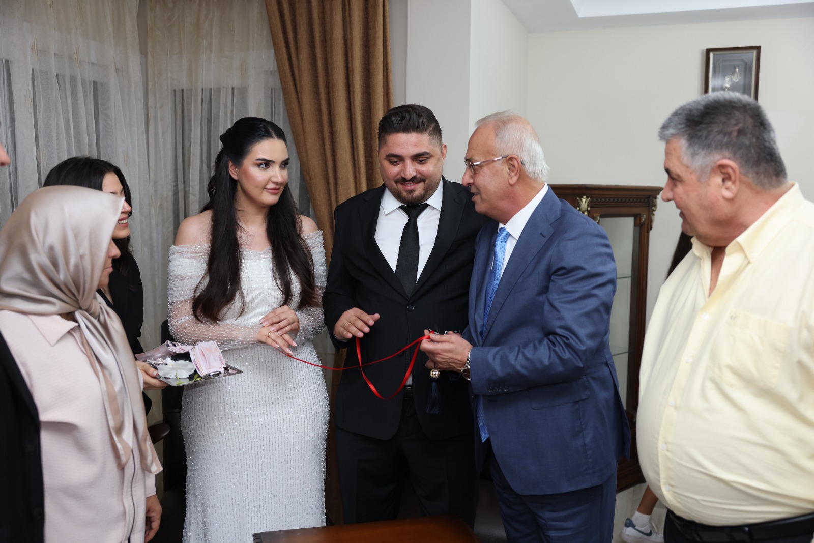 Kız evindeki isteme merasimine MHP Adana İl Başkanı Yusuf Kanlı, Pozantı Belediye Başkanı Ali Avan, MHP Pozantı İlçe Başkanı Mehmet Kurtul ve önceki dönem Karataş Belediye Başkanı Necip Topuz katıldı. Tören, Avan ve Topaloğlu ailelerinin yakınlarının da katılımıyla gerçekleşti.