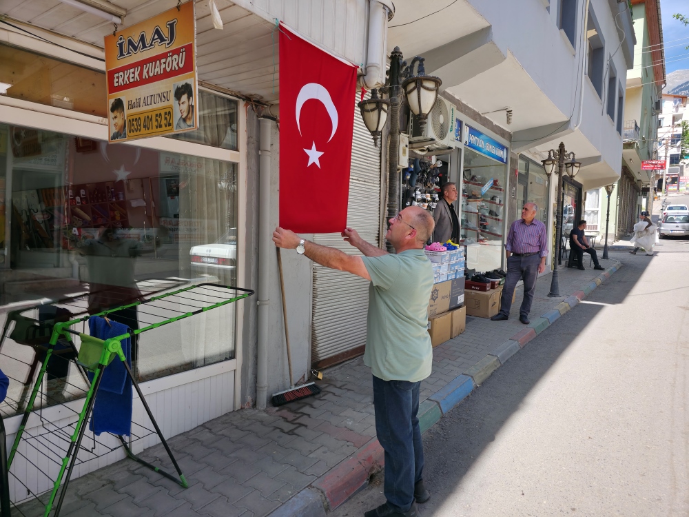 Pozantı’da esnaflar, ilçenin 25 Mayıs düşman işgalinden kurtuluşunun 105’inci yıl dönümü öncesinde büyük bir birlik ve beraberlik örneği sergileyerek iş yerlerini Türk bayraklarıyla süsledi.